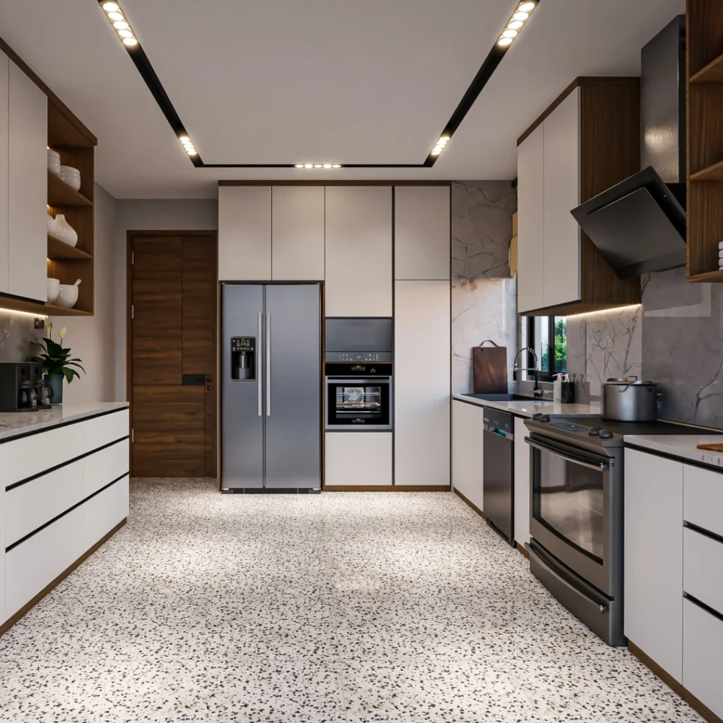 Dubai residents love sleek, minimal, and modern kitchens. Popular options include: